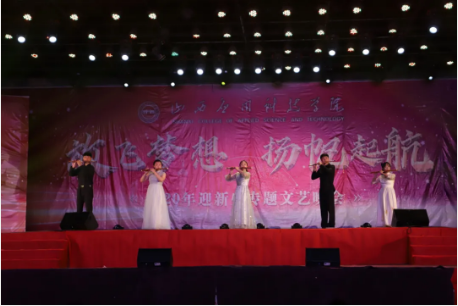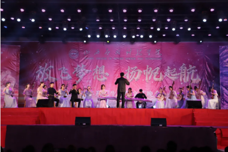 为了迎接这次迎新晚会,全院高度重视,院领导在疫情期间就进了部署:创编以爱党、爱国、爱科院、抗疫、喜迎新生入学为主题的节目创编任务。经过全院师生不懈努力的排练,截止到10月7日,音乐表演、舞蹈表演、播音主持三个专业利用业余时间共创编,共排练了46个节目。杨立岗、英瑞两位院长从10月8日至12日每天下午提前到场安排审查指导了全部46个节目,从中初选出20个备用节目,从10月13日至16日每天下午联排,经过认真筛选,最后选定了18个节目参加这场迎新晚会的演出,并商定了本次晚会的主题是:放飞梦想 扬帆启航,本次晚会的特点是:以学生为演出主体,全面锻炼我院学生的实践演出能力。全部参演327人,其中学生人数达到了274人。通过实践演练使学生尽快把所学到的知识和技能运用到实践中去,逐渐成为应用型人才。经过10月19日下午4个小时走台排练和当晚近4个小时的彩排,20日晚7点终于把这场凝聚着全体演职人员心血的18个节目代表全校师生员工奉献给了近4000名新生。整台晚会赢得师生一致喝彩。