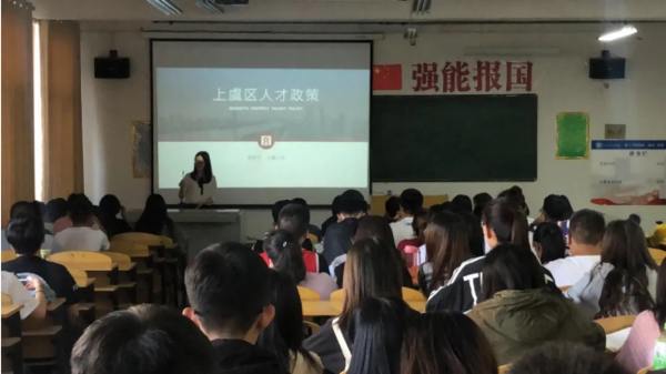 会上,绍兴市上虞区人力资源和社会保障局引才专员向毕业生详细地介绍了绍兴的地理位置、人文历史和经济实力等情况,重点介绍了上虞区针对高校毕业生的就业创业优惠政策。比如为毕业生提供的房票安家补贴、创业学生的资金补贴等。现场的毕业生与绍兴市上虞区人力资源和社会保障局工作人员围绕专业需求、薪资待遇等进行了讨论和交流。