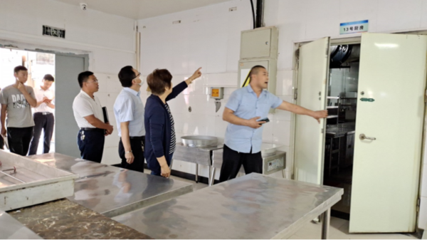 金秋九月开学季,精心督查迎学子。为切实做好新学期秋季开学工作,严格落实餐饮安全责任制,9月8日下午,后勤保障处处长孔焕兰带领王伟副处长、督导考核处负责人史灵云及膳食科一行人,就餐饮中心贯彻落实习近平总书记“坚决抵制舌尖上的浪费”指示精神和餐厅消防安全、食品安全、环境卫生、垃圾分类等事项进行了全面检查,对存在的问题进行认真的剖析,针对查出的问题要求限时整改。并明确膳食科长陈文超为现场管理第一责任人,继续跟踪督查,加班加点严格落实,确保餐饮中心做到明厨亮灶,环境整洁,食品健康,饮食卫生。让全体师生口感佳、胃满意,食无忧、体强健,评建全投入、干劲齐协力!