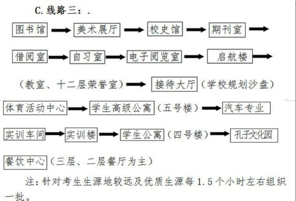 参考路线:依据考生专业类别、考生分数档及考生不同的关注点,细化参观路线,具体如下: