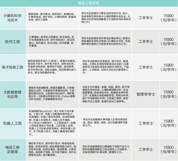 学院设有4个本科专业:汽车服务工程、电气工程与智能控制、交通工程、新能源科学与工程;另设有3个专科专业:汽车检测与维修技术、机电设备维修与管理、数控技术。学院现有学生596人,其中本科学生289人,专科学生307人。