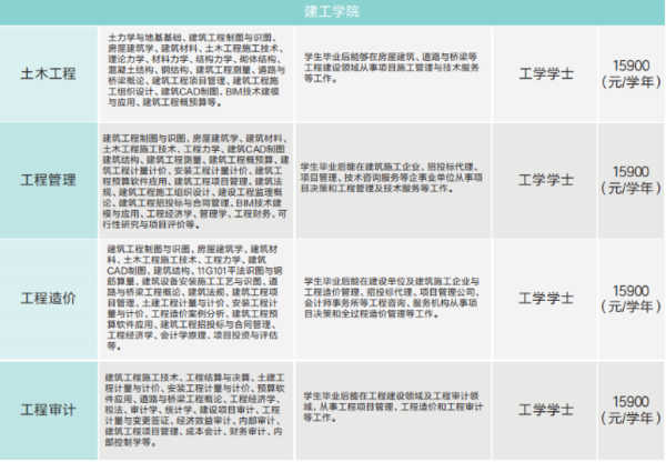 建工学院成立于2014年6月(前身为建工系),目前有土木工程、工程造价、工程管理、风景园林、工程审计五个本科专业;有建筑工程技术、工程造价两个专科专业。学院有专任教师67人,其中教授7人,副教授和高级工程师17人,在校生近2000余人。