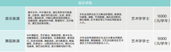 学院现有本科生1140余人,专职教师59人,教授2名,副教授4名,讲师13名。学院设有音乐表演、舞蹈表演两个专业。音乐表演专业于2020年被评为学校一流专业,并被推荐为省级一流专业。教师在省级以上获奖83人次,学生126人次。