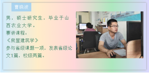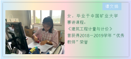 参赛教师曹晓波讲解的是“砌体墙体”的有关内容,从砌体墙体的基本概念到它的使用方法与结构,深入浅出,引人入胜。刘雨雁老师以“居住区景观设计”为题,语言干净利落,教态自然大方,教学设计合理,获得各位评委的一致好评。申倩老师则讲述了“招标工程量清单的编制”一节,教学流程清晰,目标明确,各项知识点条理清晰,充分展现了一名大学教师严谨、认真的教学态度。