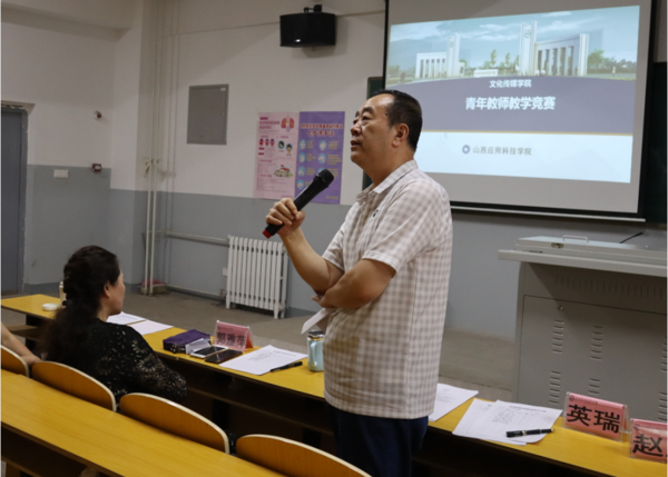 为扎实做好教师培养工作,为新教师搭建教学能力磨砺提升平台,促进广大教师加强教学交流,促进教学思想、教学方法与教学技能的积累、提升,为学校教师教学能力竞赛输送参赛教师。6月16日,文化传媒学院教师教学能力竞赛在二号教学楼301教室拉开帷幕,文化传媒学院院长英瑞,党总支书记郭雅萍,传媒系系主任刘晓宇,教学科科长高晓波莅临比赛现场并担任评委。
