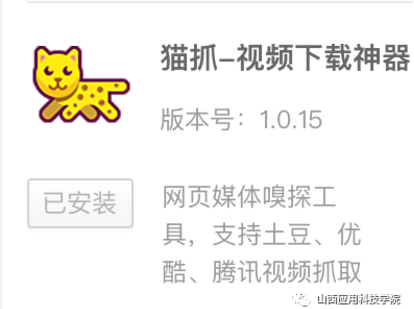 经常有老师反映自己下载的视频无法上传到学习通云盘,问题就出在视频的格式不对。有些老师会选择利用一些软件将视频格式进行转换,但是依旧不成功。 我更建议使用电脑录屏软件或浏览器插件进行视频抓取,所获得的视频格式直接为“MP4”。若是360浏览器,大家可以在“应用中心”搜索插件“猫抓——视频下载神器”(图4)安装之后,即可对网页所播放视频进行“获取”。
