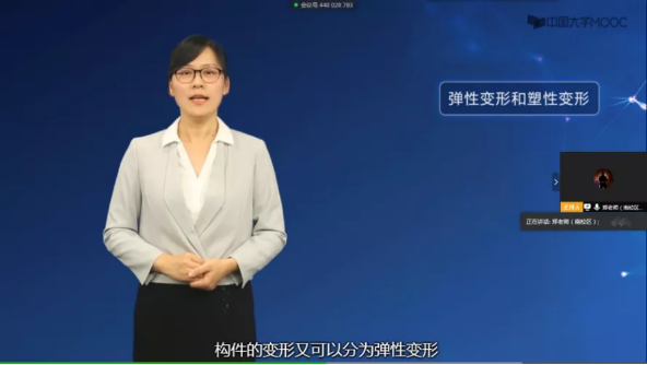 利用“腾讯会议”直播软件即时性的功能,将优质网络教学视频,在课堂上与学生进行共享学习,并事先提出相关的问题,让学生带着问题去看视频,激发学生线上学习的主动性和紧迫性。下图为《机械基础》课程教学过程中,所采用的中国大学慕课网教学资源,并利用“腾讯会议”共享给学生观看的截图: