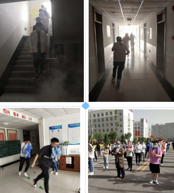 讲座结束后,参加演练的全体师生集合在公寓楼前进行了应急疏散逃生演练。在实际演练中,在带队老师讲解完毕后,全体师生进入实战演习。当发生火灾时,听到声光报警器、警铃、警哨响起时,参练学生不惊慌、保持冷静,用水沾湿毛巾握住口鼻、俯下身,按照疏散指示标牌,安全出口指示标牌、走步梯,听从现场疏散引导员的指挥,迅速有序有效地按照逃生方法和路线,紧急疏散撤离到全地带,随后集合整队、清点人数,整体演练一气呵成,起到了消防演练的实际作用。